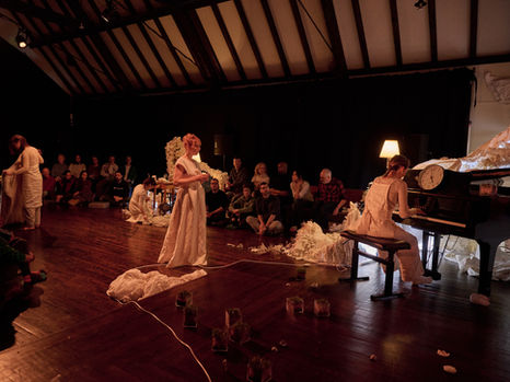 CHANT 2 : LE MURMURE DU VIVANT est une expérience immersive alliant musique improvisée (chant, électroacoustique), danse contemporaine et arts visuels, pour creuser, de façon intime et collective, la question du silence: